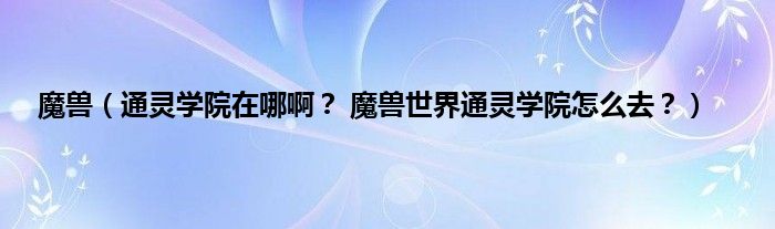 本文,魔兽,通灵学院在哪啊? 魔兽世界通灵学院怎么去?到此就分享完毕,希望对大家有所帮助。