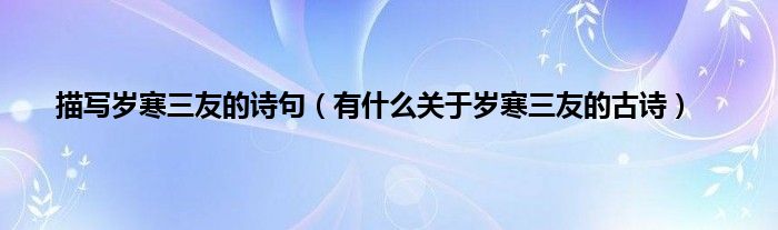 本文,描写岁寒三友的诗句,有什么关于岁寒三友的古诗到此就分享完毕,希望对大家有所帮助。