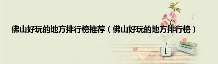 以上就是【佛山好玩的地方排行榜推荐,佛山好玩的地方排行榜】相关内容。