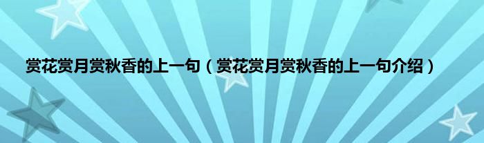 本文,赏花赏月赏秋香的上一句,赏花赏月赏秋香的上一句介绍到此就分享完毕,希望对大家有所帮助。
