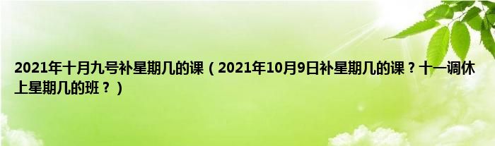 大家好,2021年十月九号补星期几的课,2021年10月9日补星期几的课?十一调休上星期几的班?很多人还不知道,现在让我们一起来看看吧!