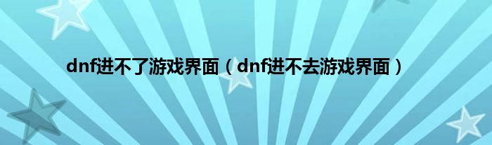 dnf进不了游戏界面(dnf进不去游戏界面)