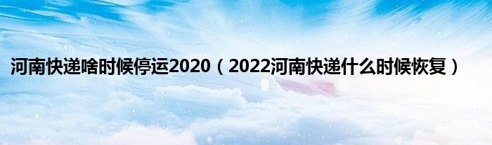 本文,河南快递啥时候停运2020,2022河南快递什么时候恢复到此就分享完毕,希望对大家有所帮助。