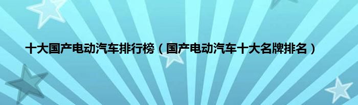 大家好,十大国产电动汽车排行榜,国产电动汽车十大名牌排名很多人还不知道,现在让我们一起来看看吧!