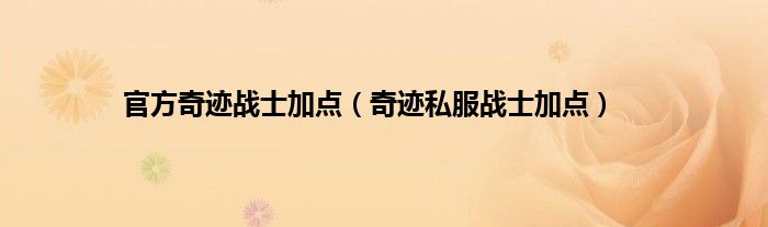 大家好,小问来为大家解答以上问题。官方奇迹战士加点,奇迹私服战士加点这个很多人还不知道,现在让我们一起来看看吧!