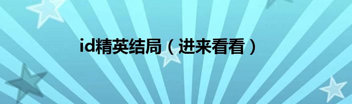 大家好,id精英结局,进来看看很多人还不知道,现在让我们一起来看看吧!