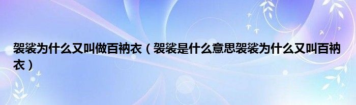 大家好,袈裟为什么又叫做百衲衣,袈裟是什么意思袈裟为什么又叫百衲衣很多人还不知道,现在让我们一起来看看吧!
