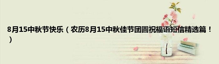 大家好,8月15中秋节快乐,农历8月15中秋佳节团圆祝福语短信精选篇!很多人还不知道,现在让我们一起来看看吧!
