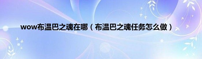 本文,wow布温巴之魂在哪,布温巴之魂任务怎么做到此就分享完毕,希望对大家有所帮助。