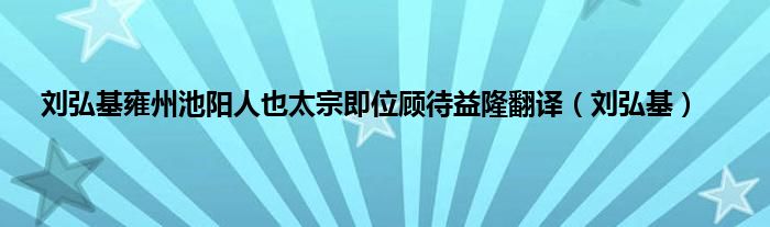 刘弘基雍州池阳人也太宗即位顾待益隆翻译(刘弘基)